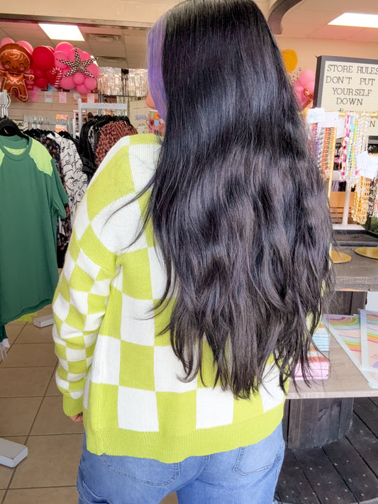 Green Checkered Cardigan