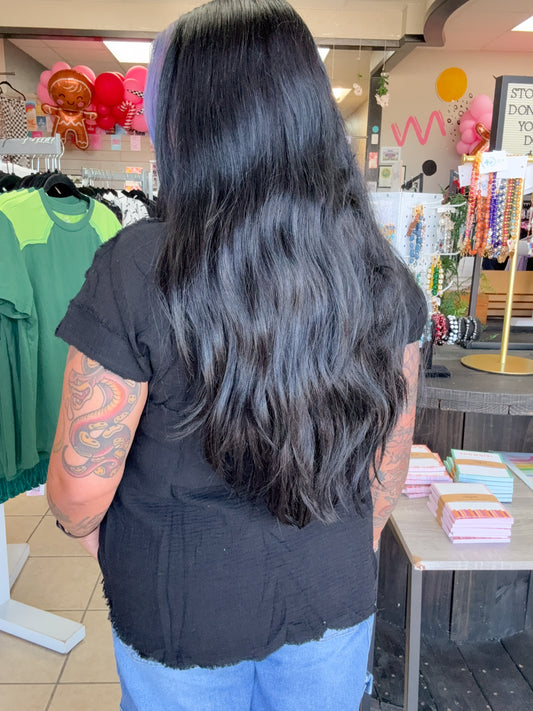 Oversized Black Linen Top